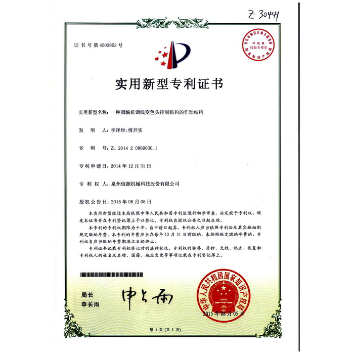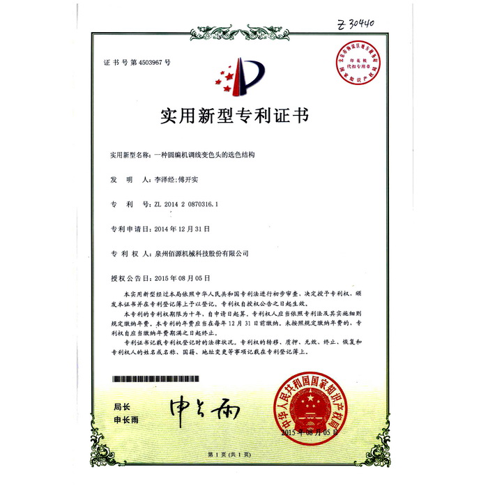 001一種圓編機(jī)調(diào)線變色頭的選色結(jié)構(gòu)