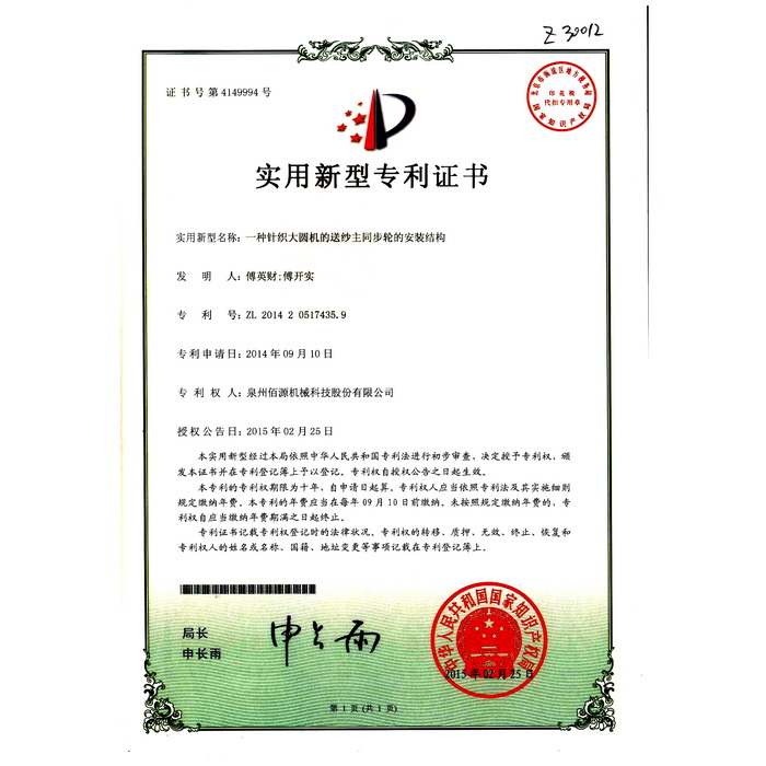 01一種針織大圓機(jī)的送紗主同步輪的安裝結(jié)構(gòu)